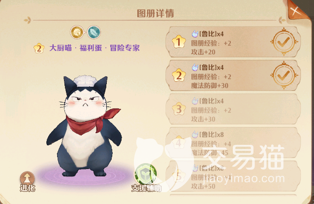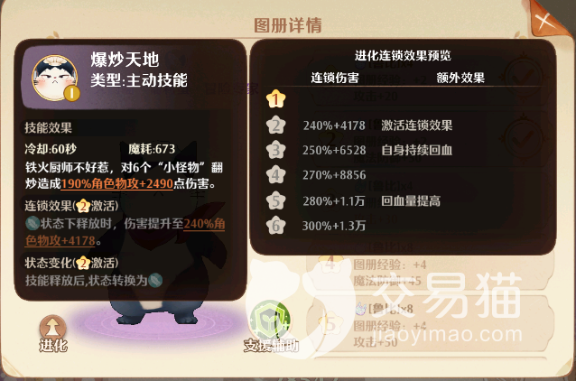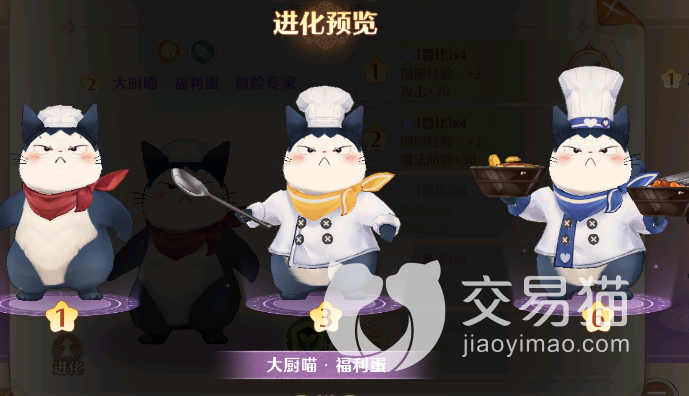 【大厨喵·福利单】是一个拥有【冒险专家】和【竞技高手】两种属性的猫灵,而且这款猫灵在登录游戏后就会免费获取的,非常值得玩家们去培养,【大厨喵】的技能也非常有意思,在冒险属性下会对前方6个敌人进行翻滚攻击,造成190%的角色物攻,额外增加2490点固定伤害。