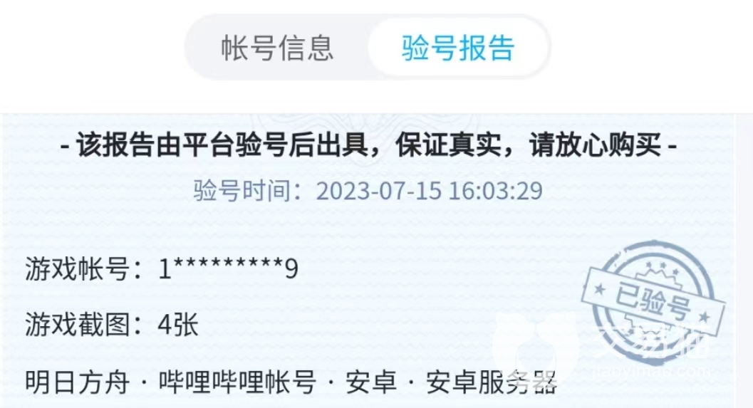 对于买家来说,交易的安全性是至关重要的,而交易猫不仅能够保证账号的安全,还能确保交易流程的安全,让大家安心买号放心用号。通过平台验证的账号可以获得一份验号报告,验号报告上清晰显示账号的区服、拥有哪些角色和限定皮肤,并配以截图佐证。大家选择平台已经验号的商品安全性更高,还不用担心会买到假号。