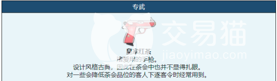 叶渚的专武武器叫做皇家红茶,是一把可爱的粉色手枪,这个手枪的设计采用了古典的风格,就像是玩家参加茶会时随手携带的小饰品一样。专武是游戏中每个角色都会有的东西,算是他们的武器,不过这个武器的开启也是有条件的,需要角色升级到五星之后才可以解锁,而解锁就需要玩家不断的去参与各种副本获得专武觉醒的材料才行,至于材料玩家可以直接点开角色信息里的专武查看。