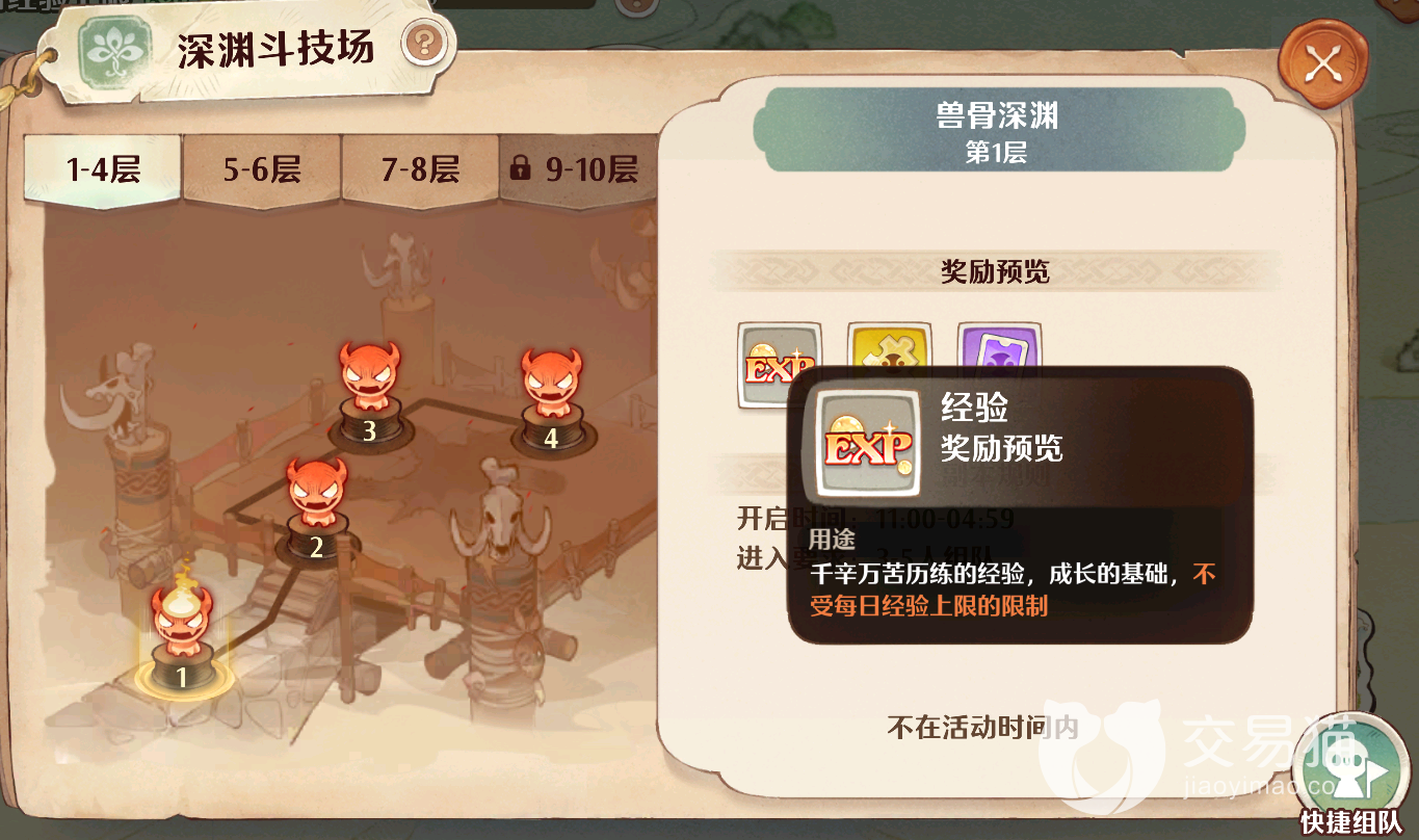 兽骨深渊:该模式需要三到五人组队来进行爬塔,每次爬塔都可获得红色经验,万灵卡牌碎片和万灵卡牌等奖励。