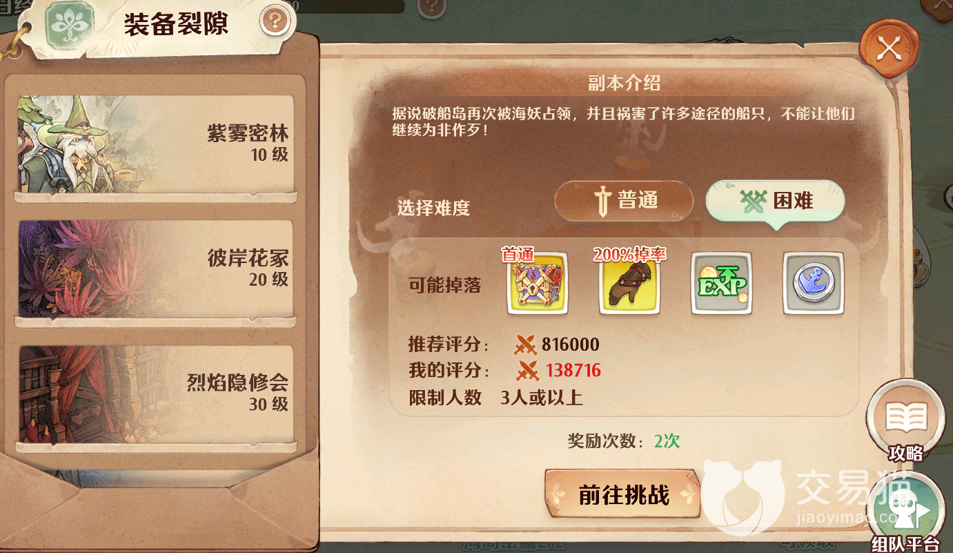 装备裂隙:这里面有10~50级的副本,首通有光珀和装备奖励,并且也可以提供绿色经验,所以建议在打完大猫货运之后就来参与,以免因为提前达到获取上限而浪费了这里的经验。