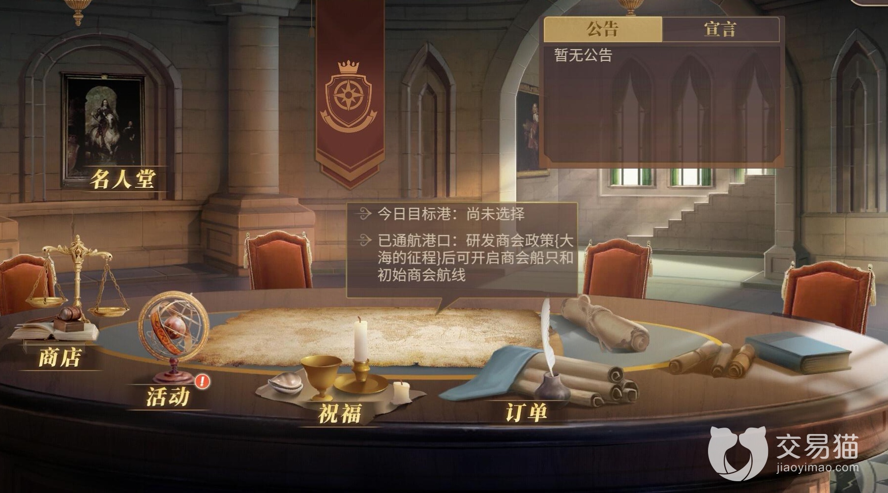 名人堂,每日2500 金币拿到手。世界订单:和其他商会一起竞争排名,有收藏品奖励,大家加入的商会整体水平强,能得到的资源就越多、越好。以及按全服个人排名和商会个人排名的额外奖励(钻石金币等)。商船:每天装船,晚上9 点发船,第二天早上9点收奖励,有大量的商会币。
