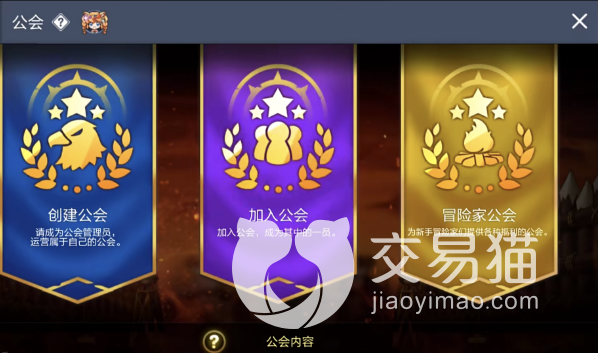 对于游戏的公会而言,大部分游戏选择的模式是玩家们自行创建。同样的在这个游戏中玩家们等级到了50级之后就能点开公会的面板了。点开公会面板就可以看到有创建公会、加入公会、冒险家公会这3个选项。