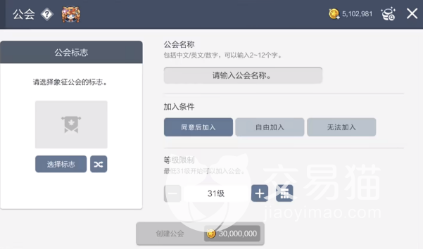 对于一些有号召力的玩家建议选择选择创建公会,直接点击创建即可。公会创建包括公会的名称、公会图标、公会的口号等,选择好后同时需要支付30w的铜币才能够成功创建。不想创建公会的话那就任意选择一个公会点击申请就可以了。