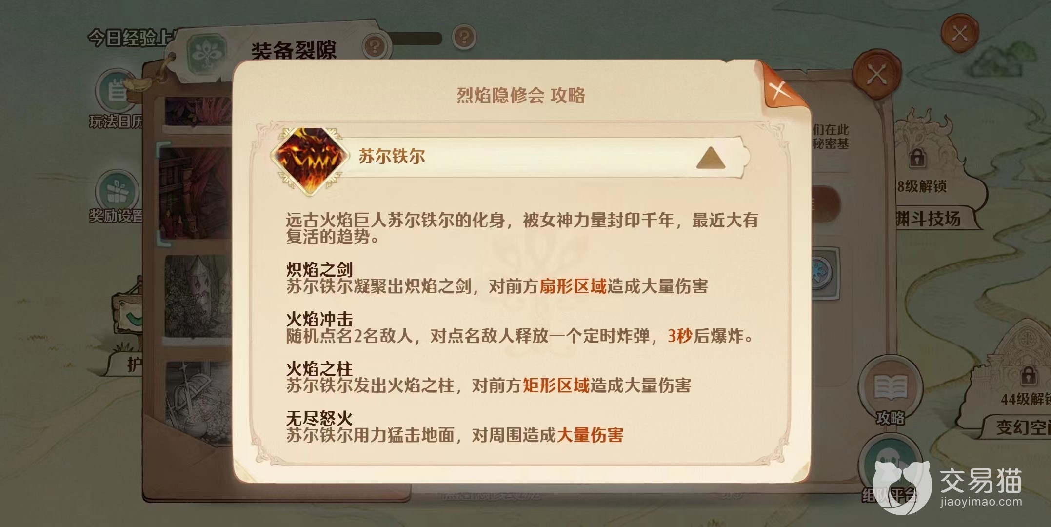第三阶段,这个阶段的boss会难一点,尤其是困难的副本,这里就不建议玩家们选择自动功能了,尽量选择手动技能输出。铁尔的技能有【赤焰之剑】、【火焰冲击】、【火焰之柱】、【无尽怒火】等。在对战的过程中,每个职业注意站位,有范围伤害的时候看到提示进行闪避。奶妈技能即时进行队员间的回血辅助。