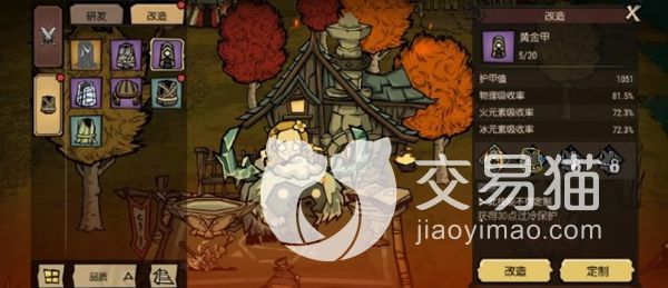 护甲改造:在护甲的下面有一个改造按钮,使用该按钮只需要消耗一定的属性以及材料就可以增加它们的具体护甲值以及吸收率,增加护甲的强度哦。