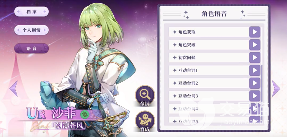 她更加喜欢真诚待人,比起虚伪的夸奖,更加希望得到别人真诚的回应。虽然是一个UR角色,但是角色设计以及语音上都很不错。如果你不喜欢她的骑士装扮,也可以在换装系统里为她更换各种精致的装扮。