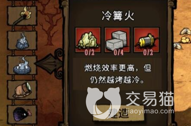 这些就是全部的介绍了,当然这个火对于放火女的被动也是有效果的,靠近火堆还是会恢复脑残值的,当然这个火的效率不是很高,所以当玩家有更好的材料的时候,使用图中所示的材料可以制作更好的冷篝火,这个火堆属于冰火的上位替代,使用起来会更加的方便,千万不要忘了制作。