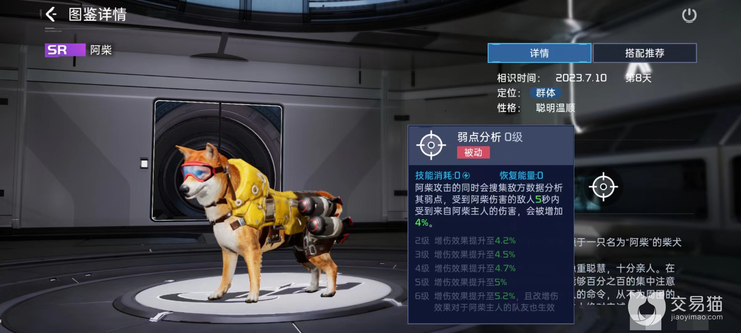 看完技能介绍之后,现在大家知道星球重启阿柴怎么样了吧,作为一开始就陪伴我们的宠物,虽然非常有感情,但是自身各项属性限制了后期发挥。前期可以先用于过度,但是后期最好将其更换成其他的橙色,或者是当做辅助使用。