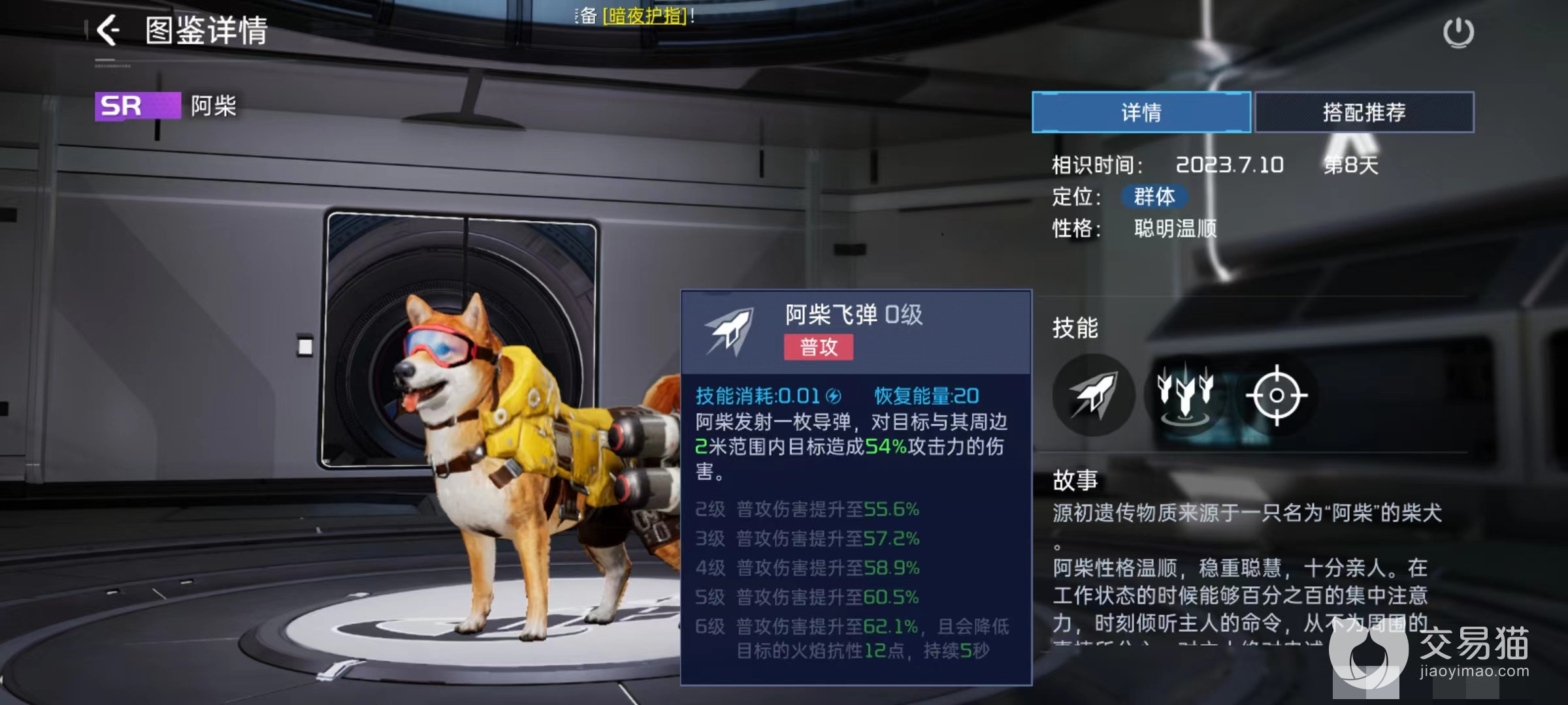 前期跟随主线很快就可以获得一只宠物狗,那就是今天要介绍的阿柴,这是一条非常温顺的宠物,而且自身属于群体输出定位,在前期提供了很多帮助,今天就一起来看下星球重启阿柴怎么样。阿柴头上戴着透明护目镜,身上有很多炸弹,这些炸弹可以通过技能方式扔在敌人头上造成输出。