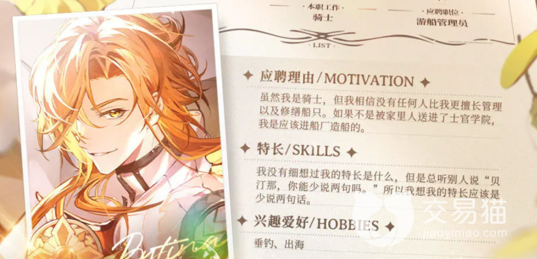 通常大家跟没有精神的人呆在一起会很累,仿佛将负面情绪也传染给了自己。欢迎来到梦乐园贝汀那怎么样呢?他就属于那种非常阳光又有活力的人,常常能将积极阳光向上的情绪传递给他遇见的每一个人,让你的队伍充满朝气以及活力,在大路上冒险的时候会更有活力,满足你对阳光型男的一切幻想。