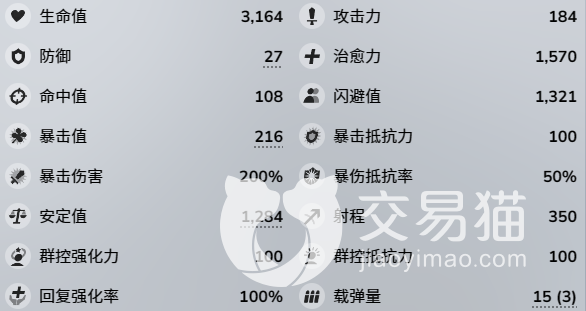 最后是公主的子技能【苦痛麻木】,当公主的剩余生命值低于30%时,闪避值得到45.9%的强化。这个接近半百的闪避数值提升可以避免公主因为血线过低而导致的死亡,为公主争取了回复血量的时间。另外,公主的被动技能还会被她的固有武器冲锋枪所强化,冲锋枪首先会为公主带来最大328攻击力、7110生命值以及971治愈力的提升。另外还能够为被动技能带来额外1152的治愈力提升效果,使公主的辅助能力和生存能力都上升一大截,甚至进入坦克最强专辅的队列。
