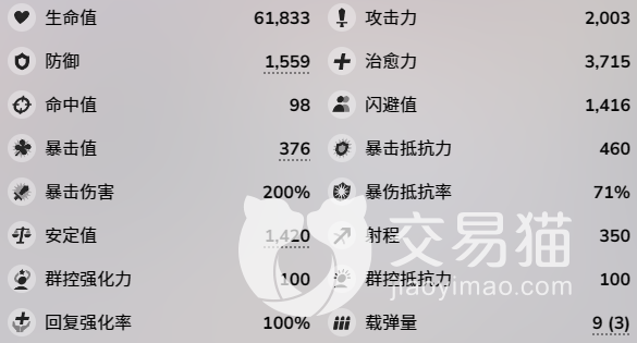 首先需要了解的是狗盾的基础属性面板,一眼看过去玩家们可以发现其中最惹眼的当属与狗盾的闪避数值以及基础治愈力,但基础生命值并不算特别高。这两条属性在狗盾一级时就能够分别达到1416点和1377点,当玩家们慢慢将狗盾的等级提升至满级时,闪避值不变,基础治愈力上涨为3715点。因此,狗盾在坦克中的类别已经非常明显,她在实战中基本都是以高闪避坦克学生的定位出现。