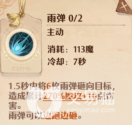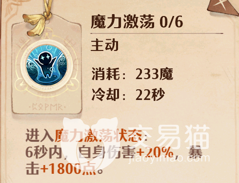 最后的五技能“魔力激荡”则是增益型技能,可以同时给予6秒的暴击与伤害提升,点满后有“爆发”与“长效”两种分支,前者提供额外的暴击增益,后者则将增益的效果转换成了风行和邪咒,并将持续时间延长至三十秒。