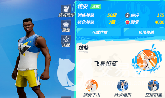 最后要推荐的则是游戏免费赠送的球员——锡安,锡安作为签到就送的强力球员,各位可千万不要小瞧他,他的实力在A级中锋中也是排的上号的,一技能“虎式冲锋”虽然没有坦克冲撞那么暴力,但是在暴扣之后,可以恢复全队的能量,是一个优秀的突破兼辅助技能。