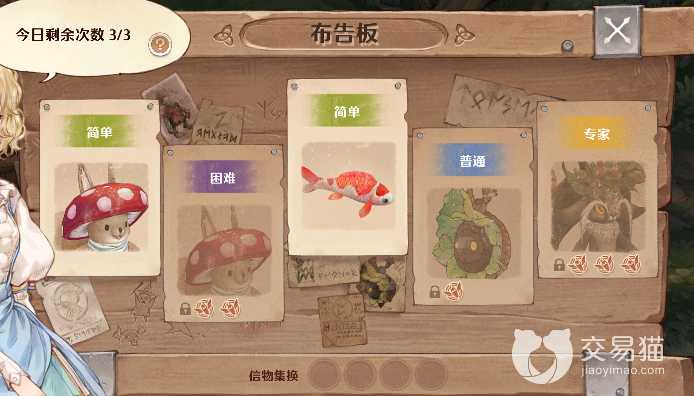 选择布告牌之后,就可以看到如下图所示的这五个难度选项,这代表了任务的难度,大家可以根据自己目前的实力条件去选择对应的难度,因为它是与其中的敌人实力以及完成条件挂钩的,不过相应的,难度越高,奖励肯定也会越多,所以如果想要最高收益,那么肯定还是直接选专家为好。