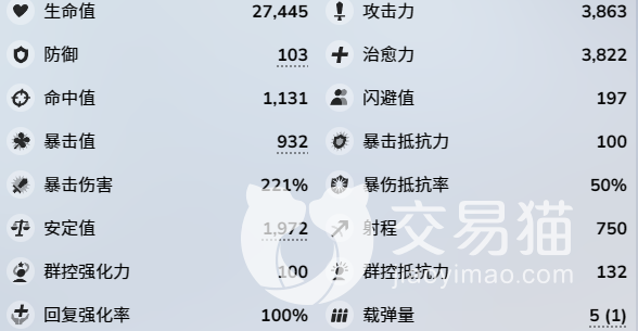 在绿猫的基础属性面板中,基础攻击力、命中值以及暴击值较为突出。攻击力在一级阶段能够达到493,满级则提升为3863,暴击数值为最低572,最高932。这样高额的基础面板也在一定程度上证明了绿猫的实战强度。玩家们如果希望绿猫的面板再次得到提升,可以通过对绿猫的专用武器进行解锁,以及对装备进行升级。