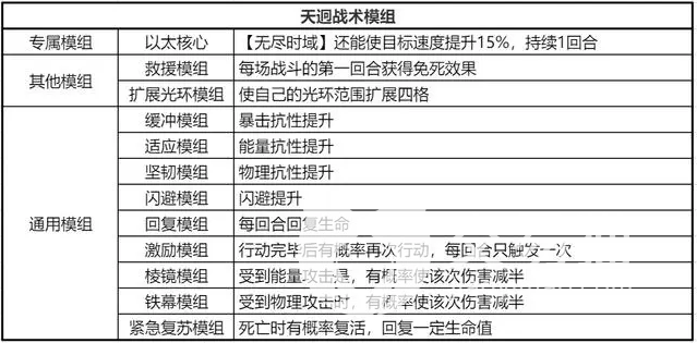 银河境界线天迴模组怎么搭配比较好呢?天迴作为一个辅助奶妈角色,想要对团队有贡献最重要的就是活着,活着才有输出,所以优先考虑防御型模组。以下表推荐为例: