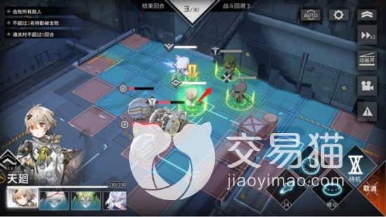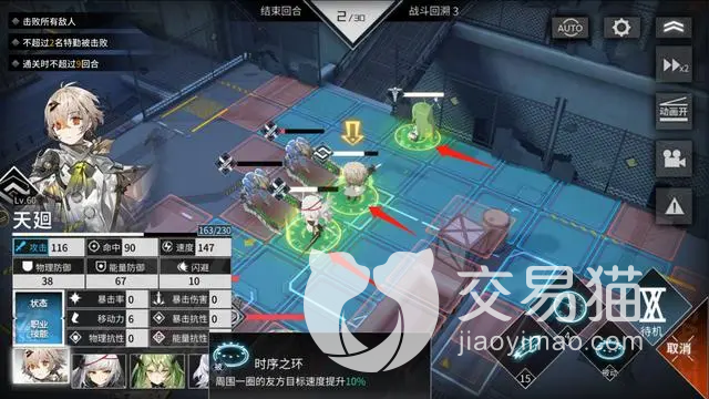 主动二技能“无尽时域·改”,技能效果为使周围四格已行动完的队友再次行动。并还能提升15%速度,持续1回合,技能次数4。范围回复技能,需要注意的是回复距离很短,比较考验玩家对战局的把控能力和排兵布阵、进攻路线的选择。技巧:尽量给天迴留下一个中心点的空间,方便天迴进来进行范围施法,使技能的回复效果最大化。