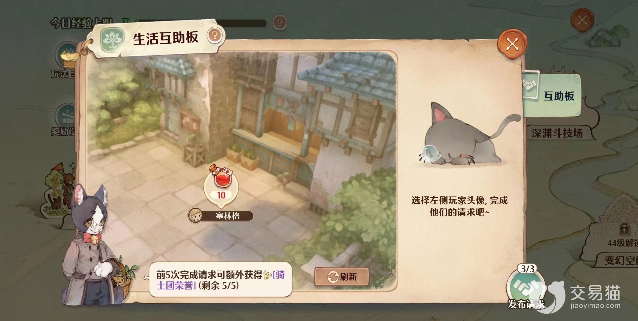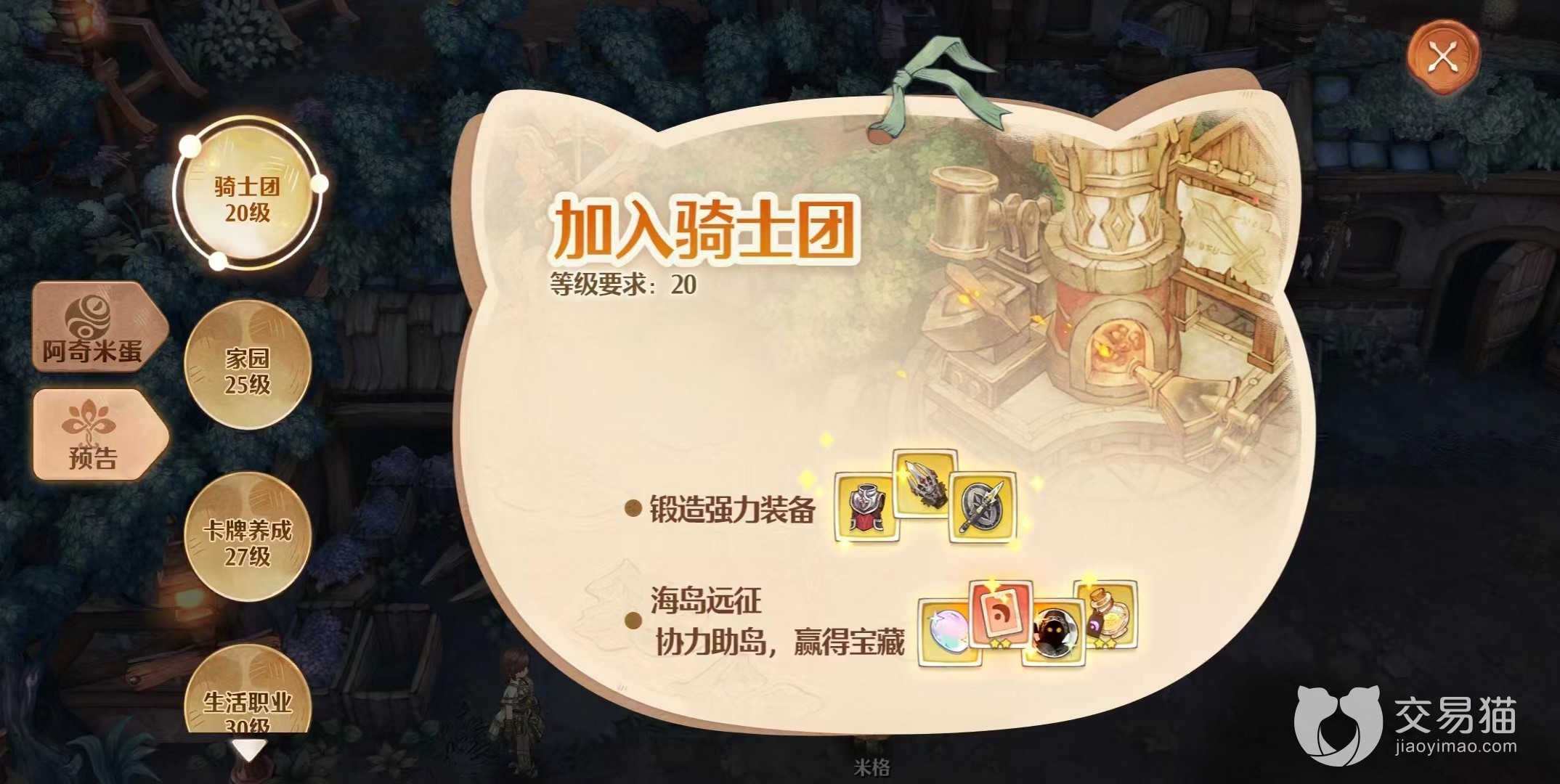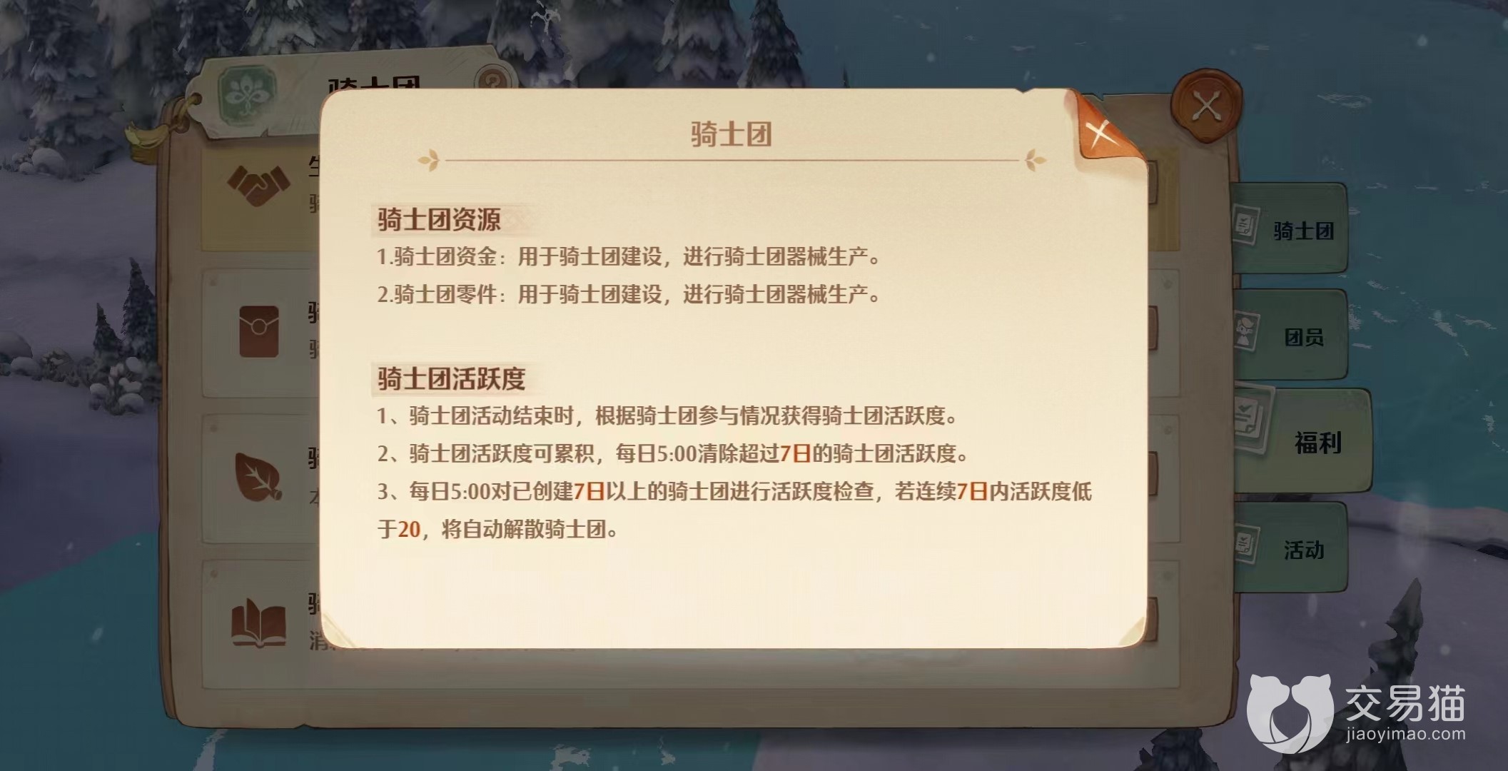 骑士团的成员无论是获得金色品质的猫灵或者是装备等等,系统都会自动为骑士团的成员们发送红包,红包一共有30个,先到先得,每周一还有公会分红。在骑士团的福利当中,团员们还能通过互助的方式来交换不同职业的产物。交换的同时还能为骑士团做出骑士团贡献。