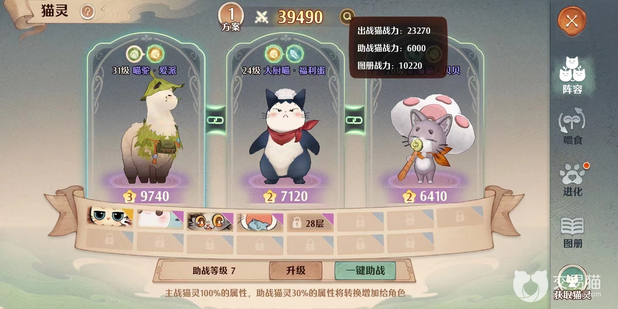 通过猫灵面板就知道,每次的上场只能带3只猫灵,但是玩家们可能会获得多只的猫灵,那么怎么将这些猫灵搭配起来能让战力提升到最大话,这里有个技巧那就看玩家选的职业。每个职业在六边的维度上都是有欠缺的,那么阵容上搭配好了就能让职业的技能发挥到最大化了。