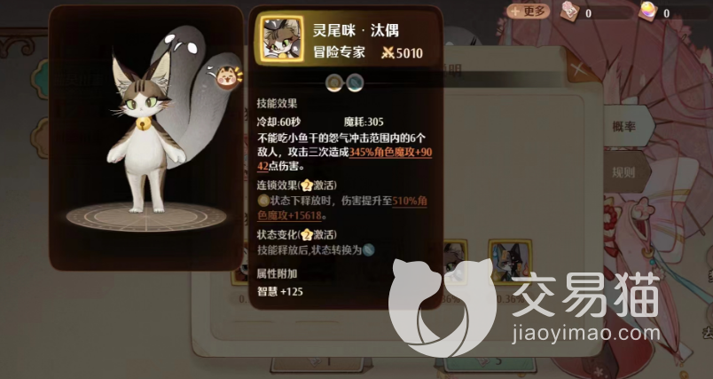以医灵为例,医灵这个职业职业的缺点就是缺乏输出技能,那么在猫灵阵容搭配上以头目克星和冒险专家为主,辅助方面的猫灵可以不带。那么猫灵上可以是红色品质的酒仙半步或者是金色品质的忍者咪都是不错的选择。