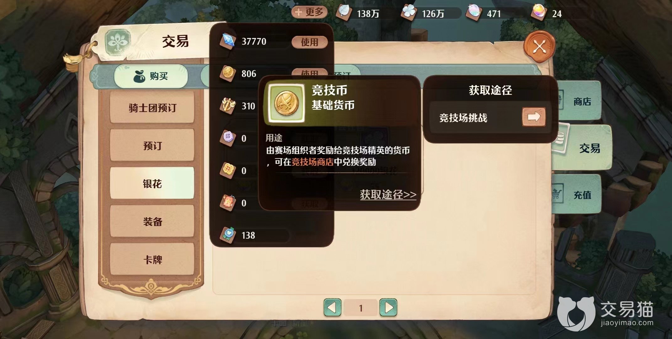 5、其他特有的基础货币,这部分都是专属货币,只能在专区使用。比如竞技场货币只能在竞技场内进行兑换,还有骑士团荣誉等都是只能在专属中进行兑换道具。