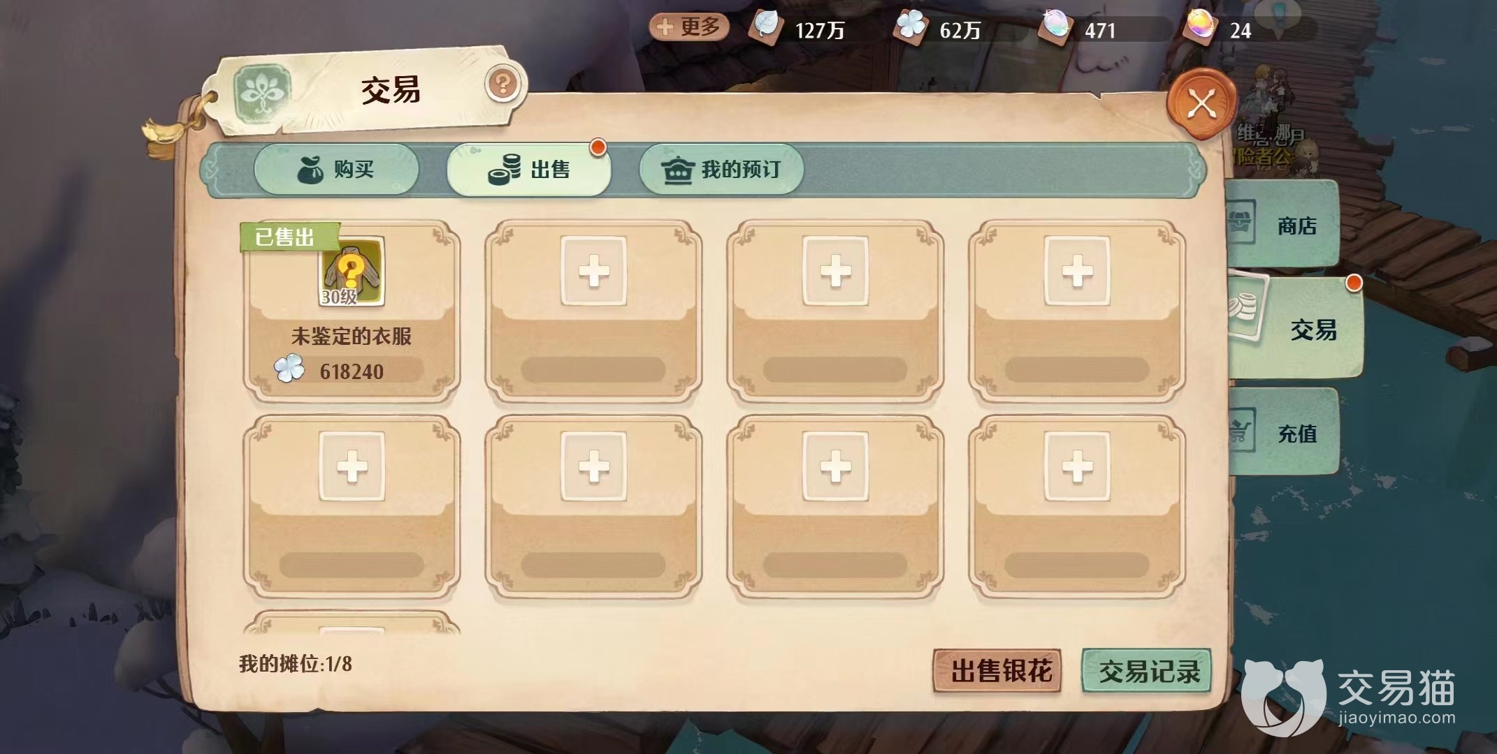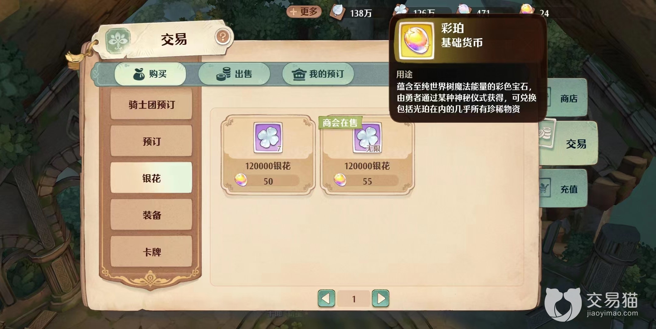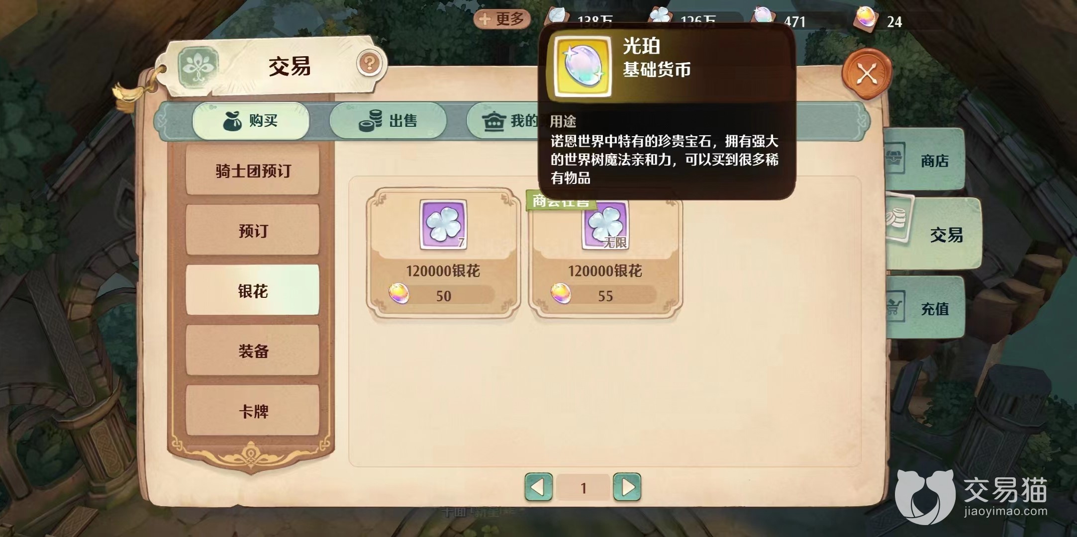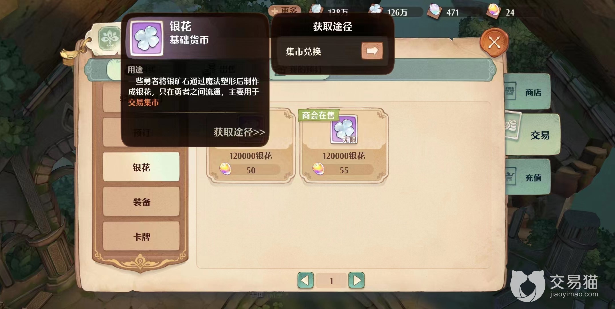 2、银花。游戏中最基础的交易货币了,主要是用于集市中够买商品,包括了武器装备和表情包等。小编就用银花在集市上买了一件未鉴定的武器。如果说在游戏的过程中开出来未鉴定系列的商品而自己又用不掉的时候可以放到集市上进行交易,也是通过银花结算的。银花还能通过各种任务获得。