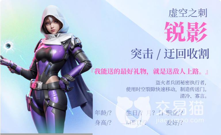 锐影是一个非常灵活机动的角色,往往可以补充在队伍当中作为一个机动的位置来使用。首先说锐影的被动,被动能够感知到对手,在危险靠近她的时候被动会发出警告,也就是说如果有对手瞄准了自身的话,那么会收到提示,这就可以帮助角色尽快的躲避对手的技能来保全自己,次元行走是锐影的小技能,可以让自身进入到另一个空间当中,这个空间是不被别人所熟知的,并且可以在空间当中进行快速的移动,而且在这个空间当中锐影是不会受到损伤的,算是一个不错的保命和突进的技能吧。