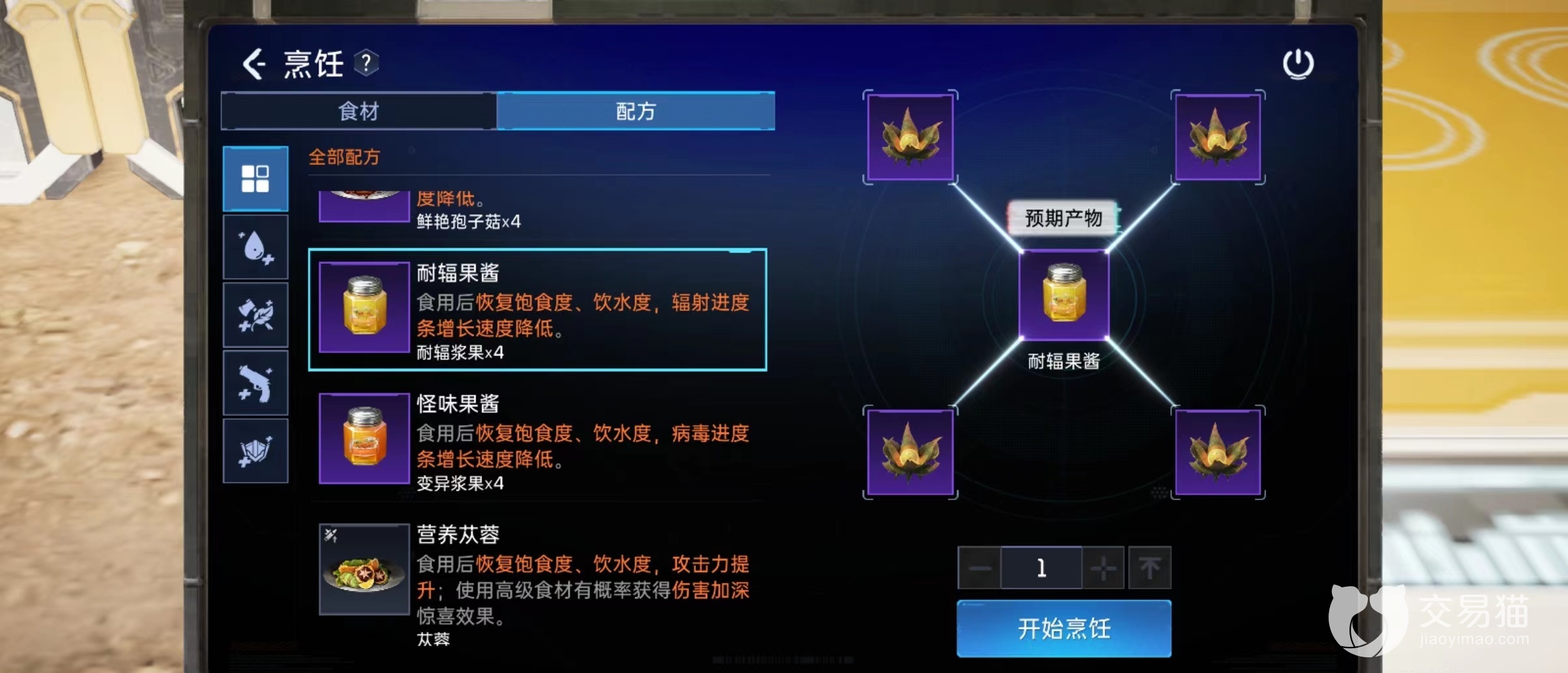 以上内容就是今天小编对于星球重启耐辐果酱怎么做这些问题的解答。这项烹饪虽然在战斗方面没有太大加成,但是能够用于辐射地区增加生存能力,所以是冒险过程中的必不可少料理,一定要发挥出正确作用。