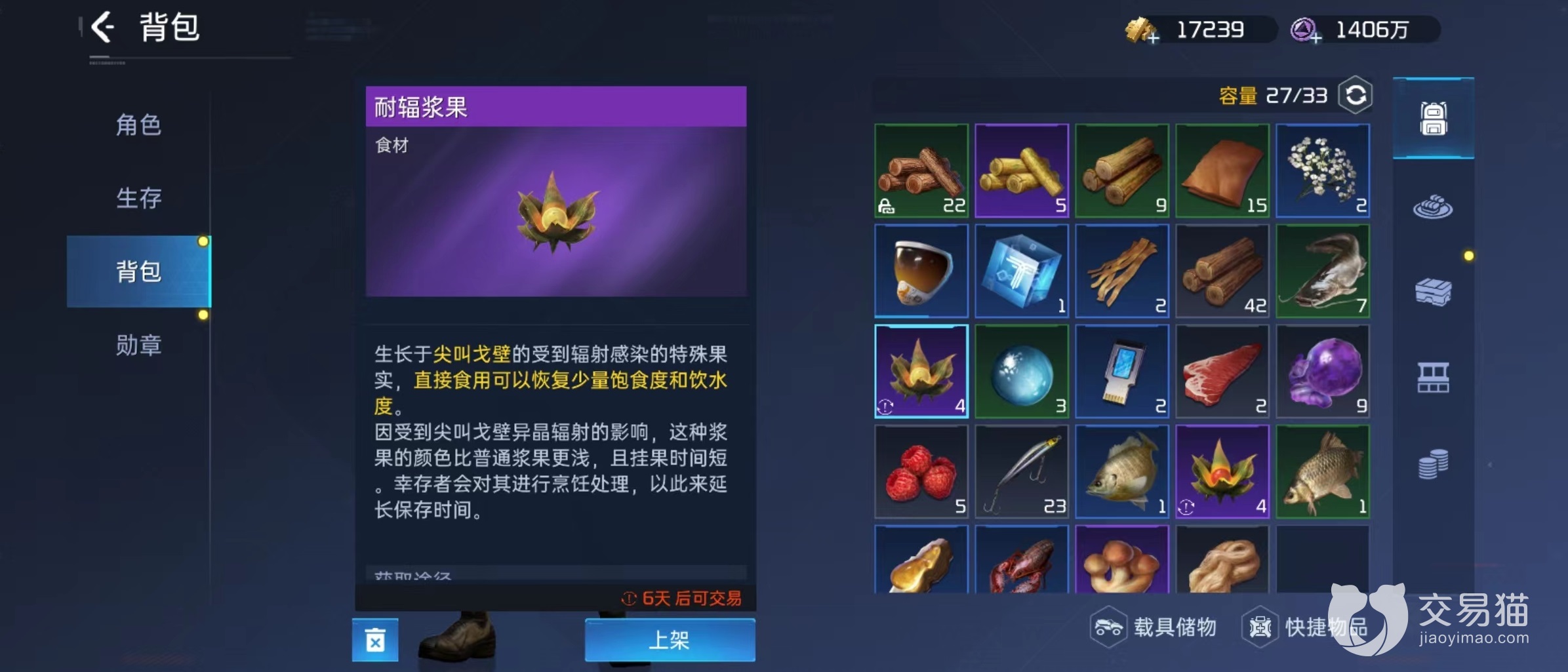 外观方面非常容易分辨,因为受尖叫戈壁辐射影响,颜色要比普通浆果更浅,只能在辐射区域中才能采集,到其他区域只能得到普通浆果。这也就奠定了它的稀有性,如果不想自己去收集,可以在拍卖行中直接购买,花费少量金条就能买到。然后将四个果实依次放入,就能够得到我们的预期产物了。熬制出来的果浆可口香甜,回甘无穷,如果想要去辐射地区冒险,建议在背包中多准备一些。