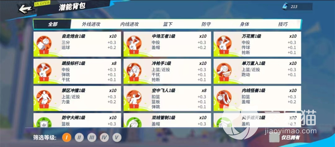 综合来说,胖虎的潜能加点有限推荐扣篮达到20点以上,而防守和力量达到10点以上,剩下的数值则可以考虑跑动和盖帽等方面,具体的潜能推荐选择空中飞人、防守大闸和内线怪兽,可以全面强化胖虎的整体实力,这样一来胖虎在内线几乎没有任何对手,对外线角色也会有很多大威慑力。