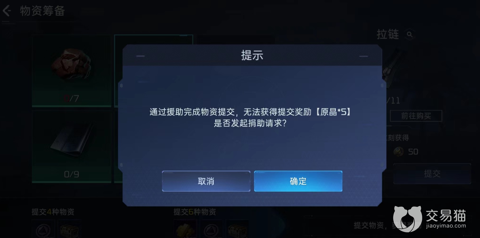 如果手中正好缺少某件道具,又不想购买,还有公会求助方式,每天有两次工会求助机会。发到自己公会中,如果其他玩家手中有相应道具,可以代替我们进行物资上交,这样对方也能获得一定的奖励,我们也能快速完成任务。6件物品如果提交4种就能获得第1次奖励,如果上交6种就能得到全额奖励。