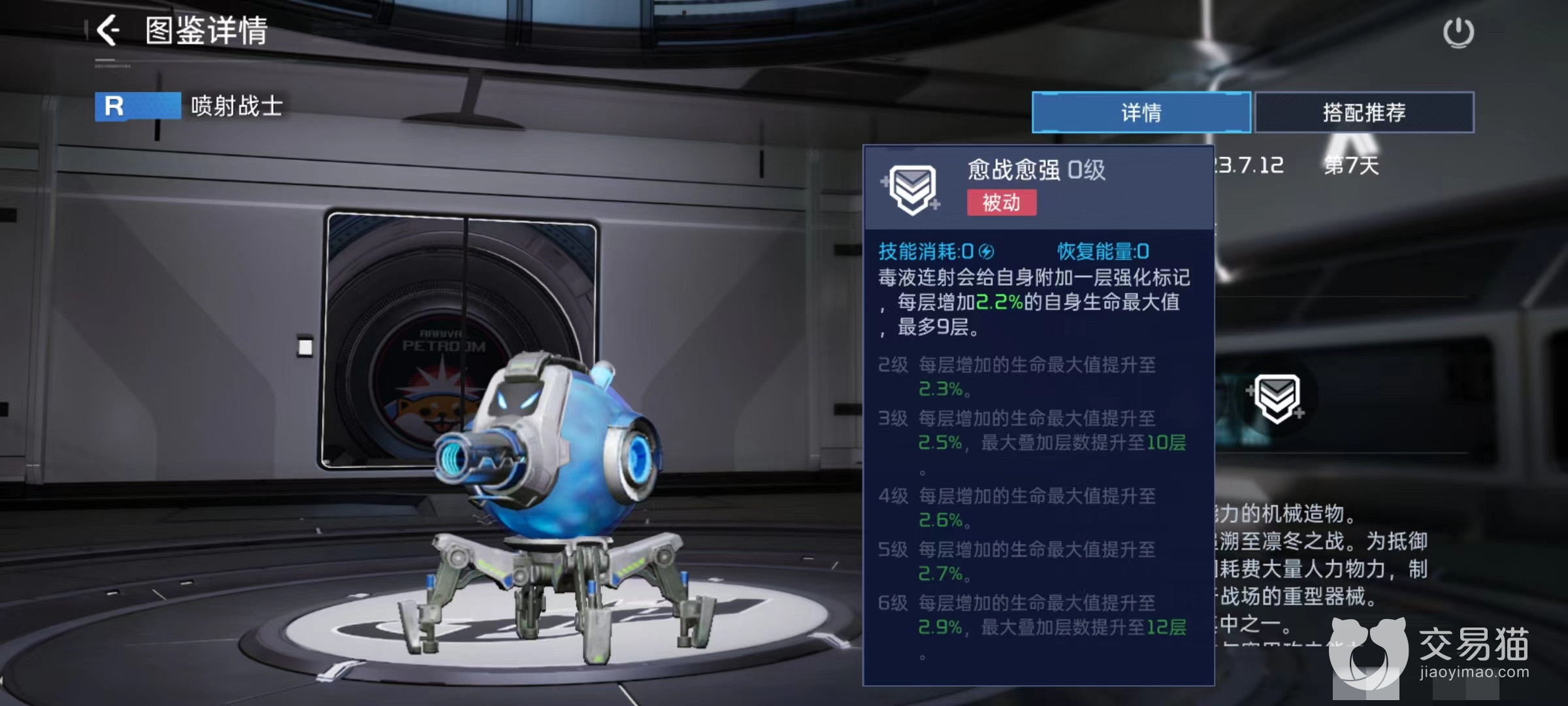 被动技能愈战愈强,毒液连射之后会给自己附加一层强化标记,每层提升最大生命值,能叠加到9层。6级时技能效果为每层增加2.9%最大生命值,叠加层数能增加到12层。虽然增加的仅仅是血量,但是因为存在主动技能用血量来换算伤害特点,所以也相当于变相强化了输出。在使用方面搭配上毁星或者是波江座等是比较合适的。