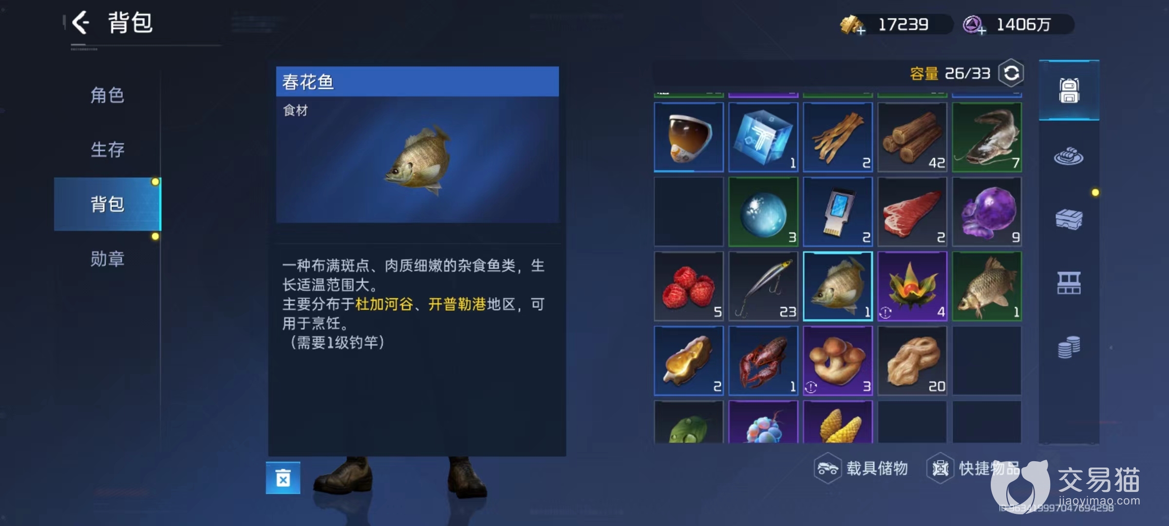 这两份材料其实在收集起来并不算困难,水资源大家非常熟悉,有两种不同选择。可以选择在雨天去采集灌木来获得露水,也可以选择去据点制作水凝胶,这两种水资源都可以当做烹饪时材料来使用,但小编更倾向于使用露水。至于春花鱼,则是一种较为稀有鱼类,比常见的刺手青,河谷鲫鱼等要更高一级。想要得到春花鱼,随便甩杆肯定是达不到目的的,只能找到鱼群。