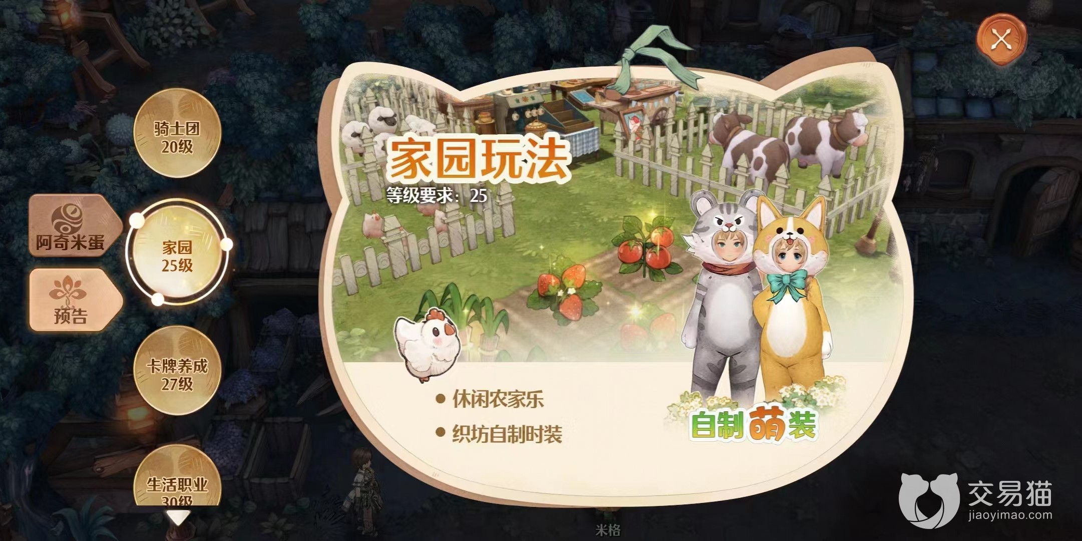 2、随着家园的升级,玩家们能在家园中进行的活动就会多起来了,包括了养鸡、养牛养殖的活动,还开设了饲料工坊和面包场,可以用来加工这些原材料变成商品。