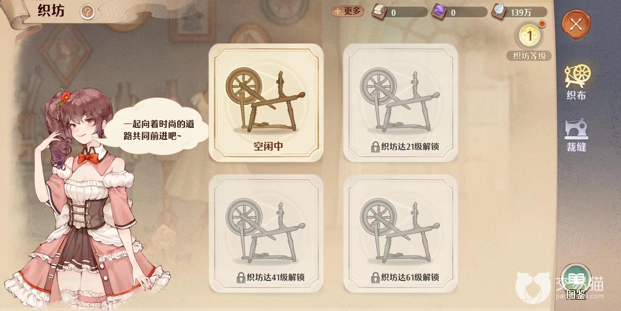 5、完成家园的引导之后会有一个奇遇,将贝尔招募进了家园进行服饰的加工和制作。在贝儿的纺织工坊内会有各种时尚单品的制作。纺织等级越高能解锁的图纸也就越高级,那么能获得的时尚套装的性能也就越好。