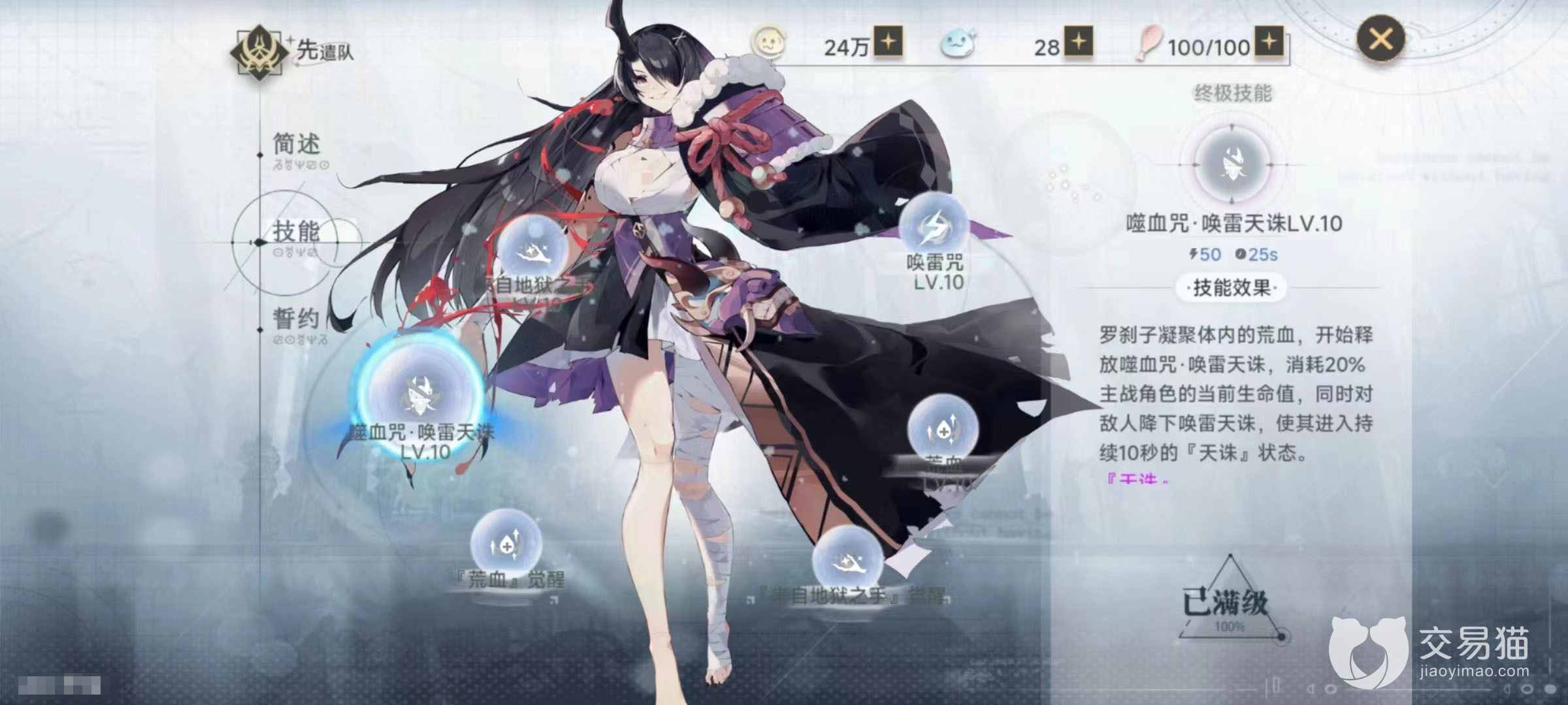 罗刹子大招会直接消耗主战角色20%的伤害,对敌人降下唤雷天诛,这是一个群体伤害,攻击完敌人后,敌人就会进入【天诛】状态,使其受到的伤害增加。