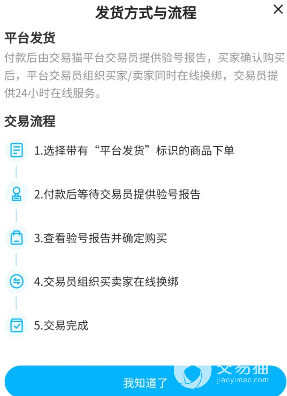 平时时间比较少的话也没必要24小时蹲守平台,因为交易猫采取的模式就是正规挂售,所以你可以放心地将账号密码交予客服,且在账号未出售之前你也能继续正常上线做任务,要是有人感兴趣向你咨询的话后台都能得到信息,双方建立成交易后再去按照交易猫的五步交易流程去操作,再加上此前已经给过账号密码所以速度相当之快。