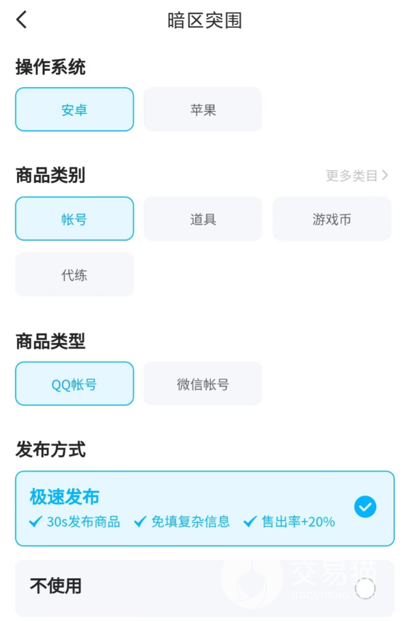 以上就是暗区突围账号出售去哪个平台快的推荐,交易猫之所以出售的快就是因为它的流量庞大而且流程干脆利落,让双方在交易各取所需的时候均能以自助的模式去体验,这样彼此配合起来效率就会很快。