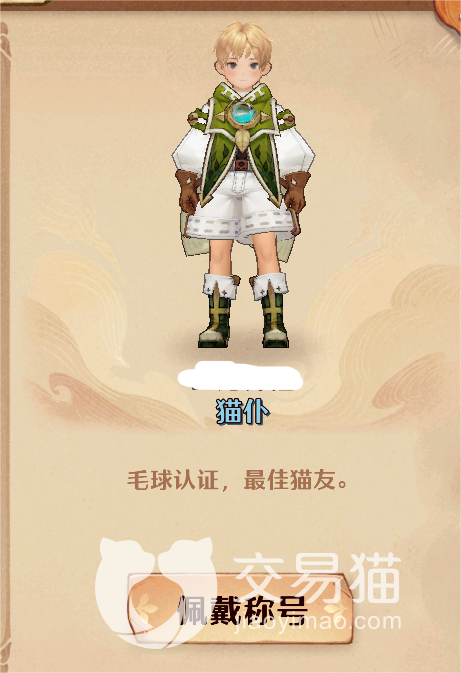 猫仆:该称号和猫灵息息相关,对于广大爱猫玩家非常具有吸引力,它需要你通过猫灵扭蛋获取二十只猫灵后方可解锁,解锁时你会受到自动弹出的提示,这个称号本身虽然只有蓝色品质,但戴在头上还是非常讨喜的。