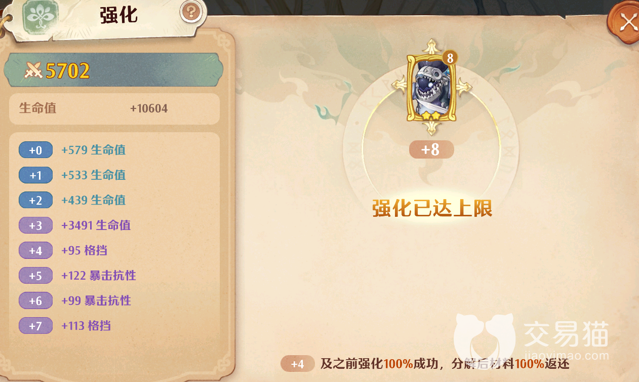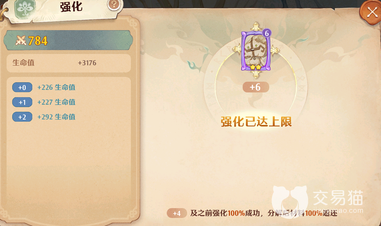 这个同组套卡顶级后有额外强化效果的设定,在金卡和紫卡那里也同样是存在的,不过这两种品质的卡牌它们的最高等级又和红卡不太一样,其中金卡的最高等级是八级,而紫卡的最高等级是六级,它们在4级以后,强化都有一定几率失败。