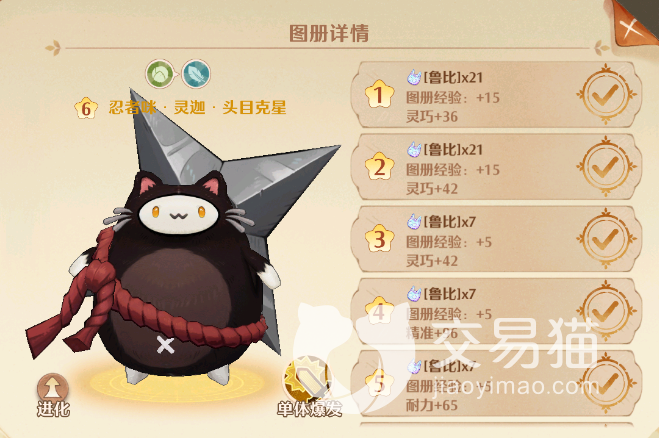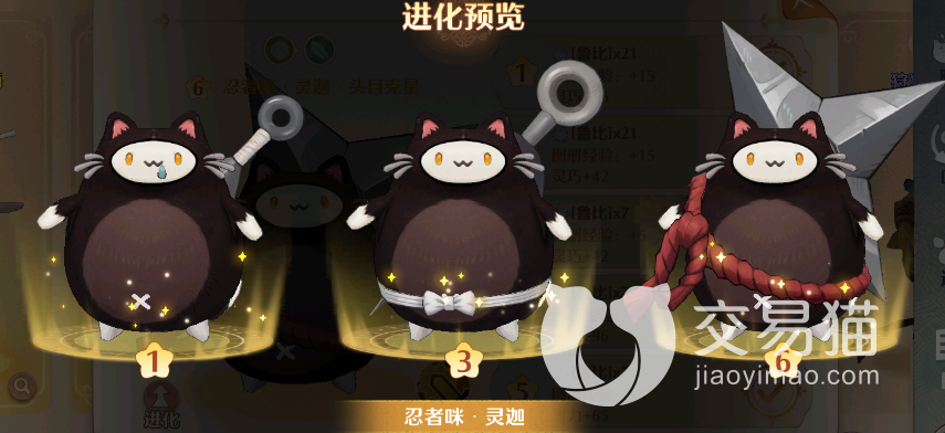 这个猫灵的品质是金色的,而且强化后外观还会发生改变,小编非常喜欢这个猫灵的外观设计,强化到6级后会变得胖胖的,同时背上会携带一个非常大的忍者飞镖,技能属性是【单体爆发】,但是这个猫灵是拥有两个属性在的。