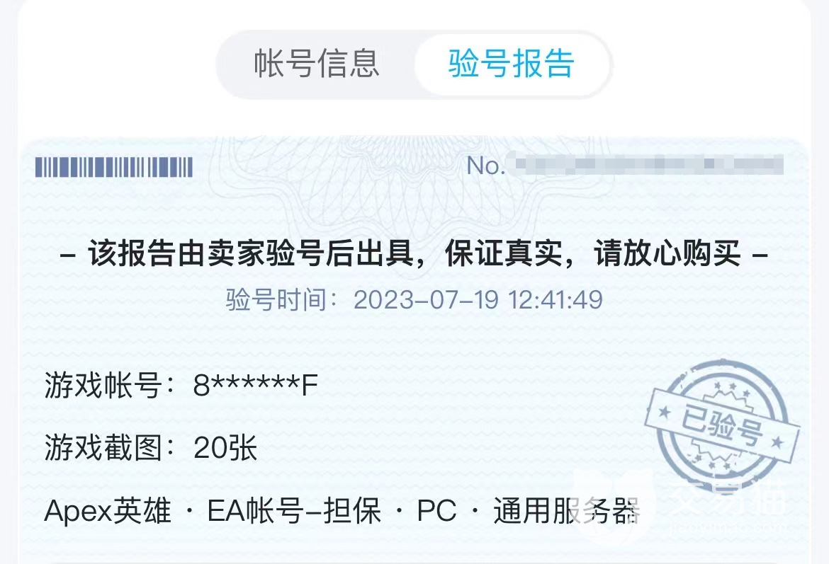 挑选账号的时候大家还可以关注一下这个账号有没有验号报告,验号报告是在平台验号通过以后才能获得的,非常有权威性和公正性,购买有验号报告的商品当然也更放心,出现假号的几率小,也能通过验号报告来了解这个账号是不是自己想要的。