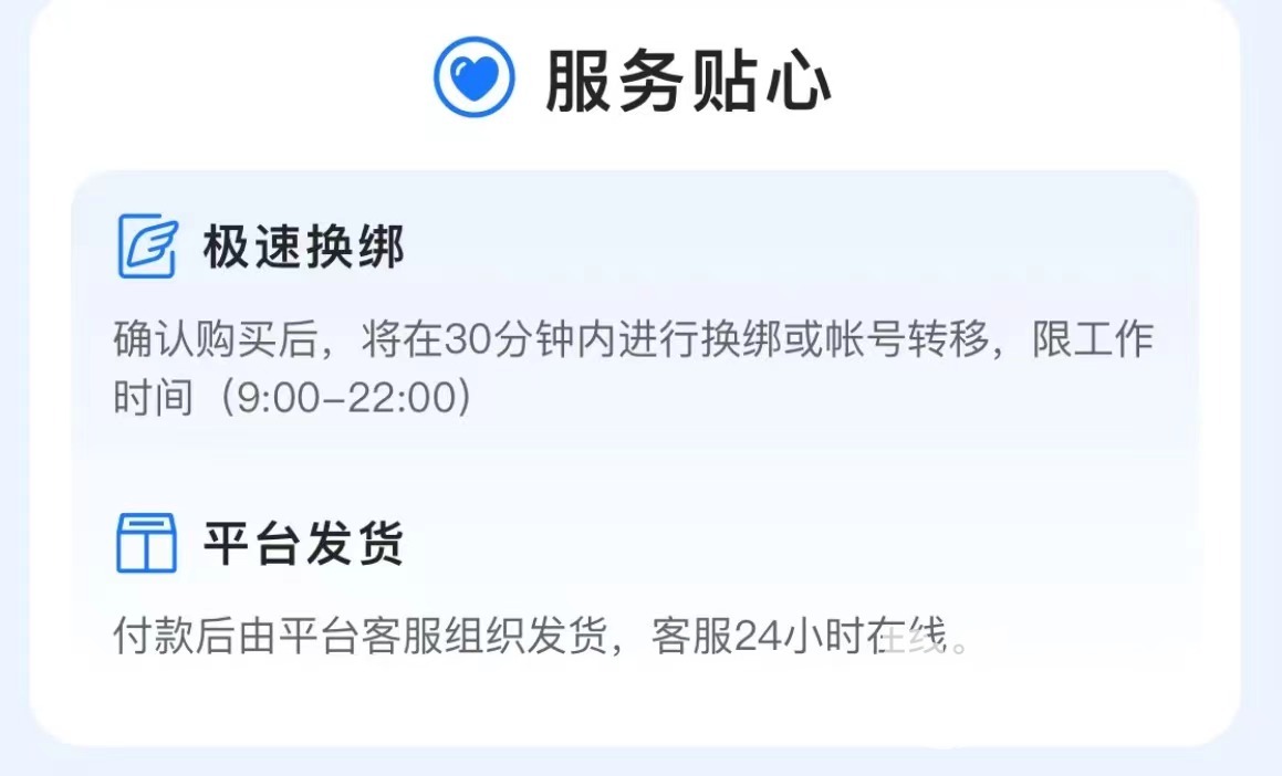 在交易手续上大家也不用担心,买家要做的就是下单以后配合卖家或者平台来验号,到换绑环节的时候根据操作指引来完成就可以了。如果交易采取的是平台发货的话就更高枕无忧了,客服人员是非常专业的,处理资料换绑也很高效,让大家快点拿到账号。