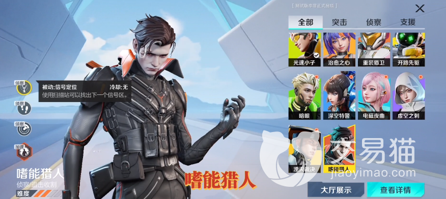信号定位:它是嗜能猎人的两个被动之一,其效果是可以使用扫描站提前找出下一个信号区,得知了信号区之后玩家就有了主动权,可以根据这个信息差来将敌人引到下一个信号区之外的陷阱之中,从而配合队友实现对敌人的围剿。
