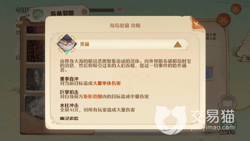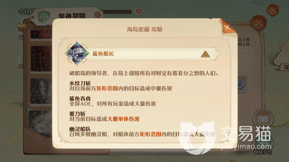在海岛密藏关卡挑战过程中会有,两个比较大的boss,分别是鲨鱼船长以及黑猫,这两个boss难度都是比较高的,玩家们需要逐一击破,第一个遇到的是鲨鱼船长,他是整个破船岛的领导者,对所有入侵者都抱有敌视的态度,他的攻击效果非常广泛,能够对敌方造成大量伤害,全屏AOE,这也就意味着玩家们无处可躲,我们需要拥有一定的防御道具才可以抵挡伤害,也需要时刻保持警惕,不要让他近身,远距离攻击才是击杀鲨鱼船长的重要手段。