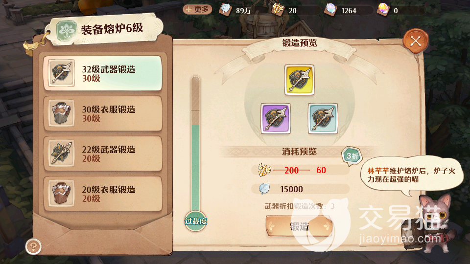 那么今天给小伙伴们整理的森之国度锻造怎么玩就介绍到这里了,进行装备锻造方法其实还是很简单,主要就是熔炉的维护,玩家们不要盲目的进行锻造,浪费资源不说,也很难打造想要的装备武器,一定要把握机会,当熔炉过载量大于80%的时候再进行打造,可以确保我们装备锻造的顺利完成哦,