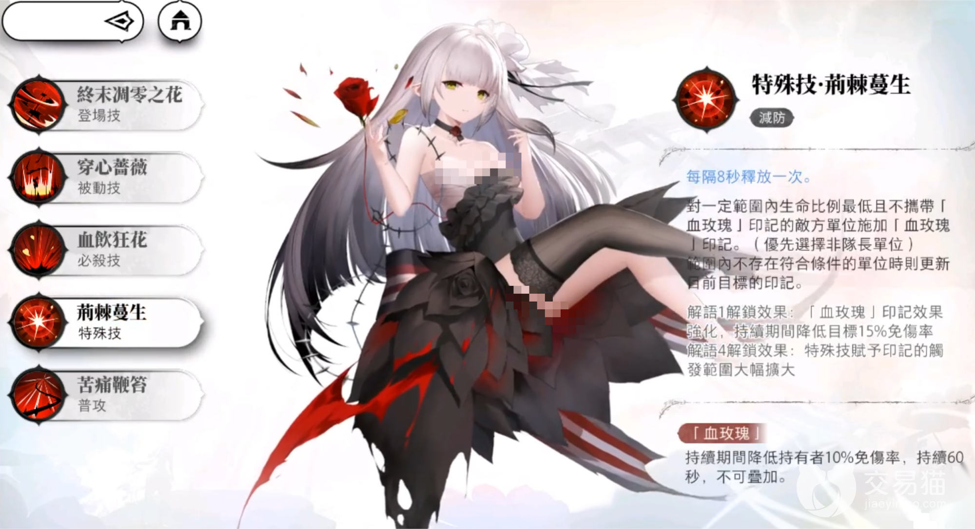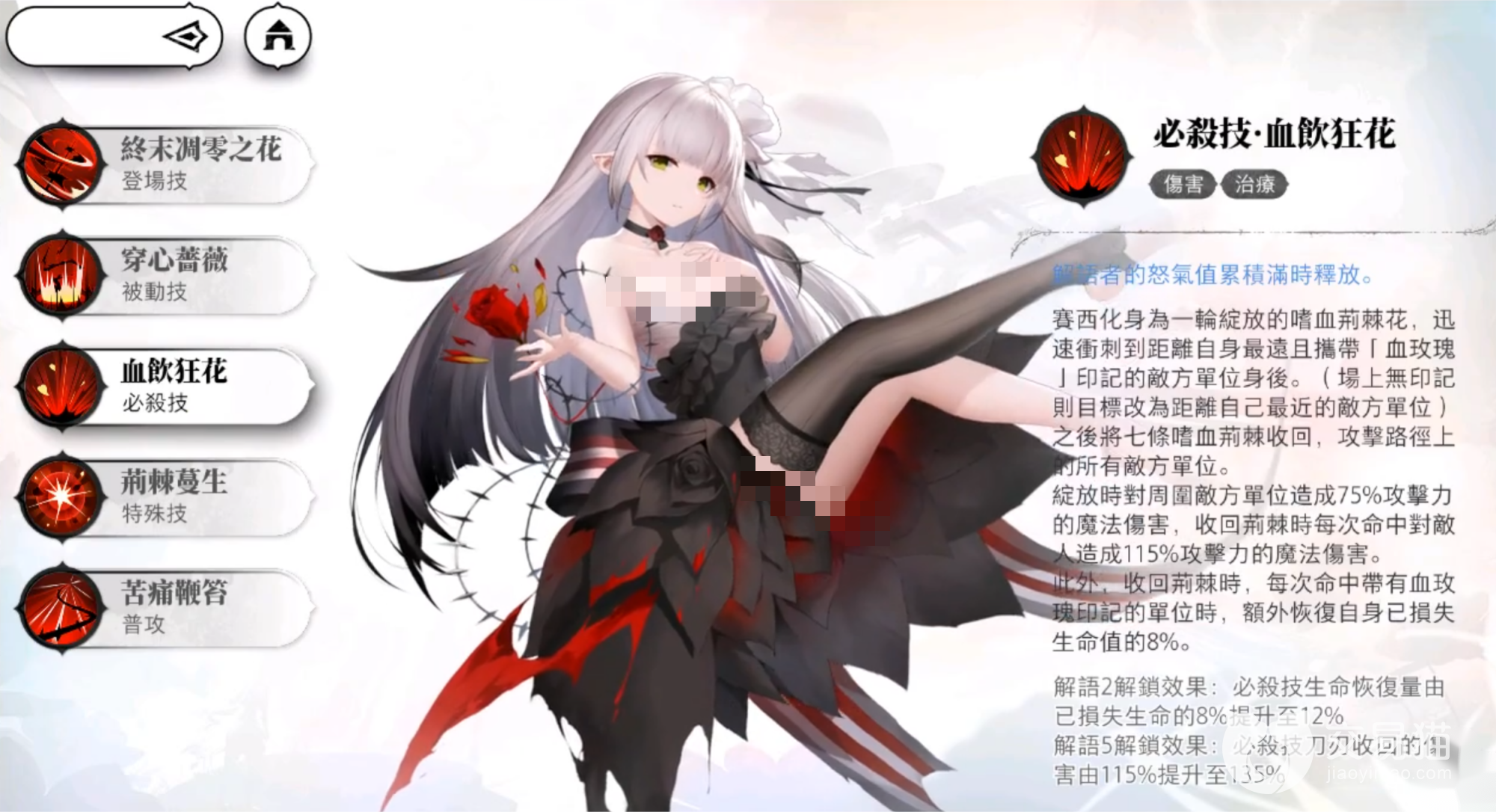 必杀技能除了超高的伤害之外还有吸血的功能,在前期不想养奶妈的速通队伍当中有着超强的作用,自己就能保证自己的续航,让着角色有着更加强大饿生存能力。