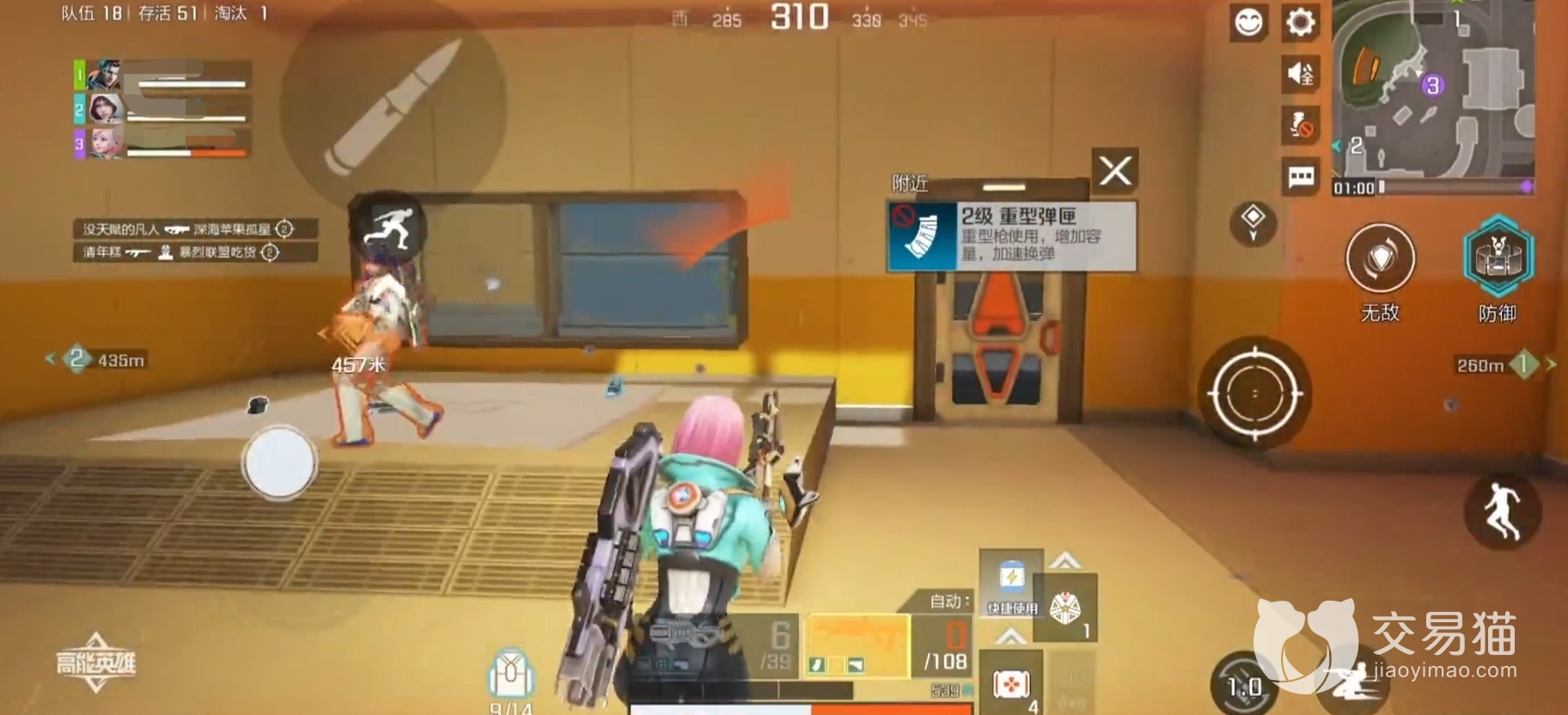 菲儿的终极技能为【绝对防御圈】,这是她的大招,同样是个支援型的技能,在使用的时候,菲儿会往自己或者是己方队友面前放置一个保护工具,实验这个工具能够制造出保护光圈,在这个光圈内部的角色都能得到保护,从而敌人无法攻击站在圈内的敌人,这个光圈的防御能力还是蛮强悍的,抗击打能力挺不错的,万一玩家被包围的话,可以把光圈放出来,这样就能防止对手集中火力的攻击。